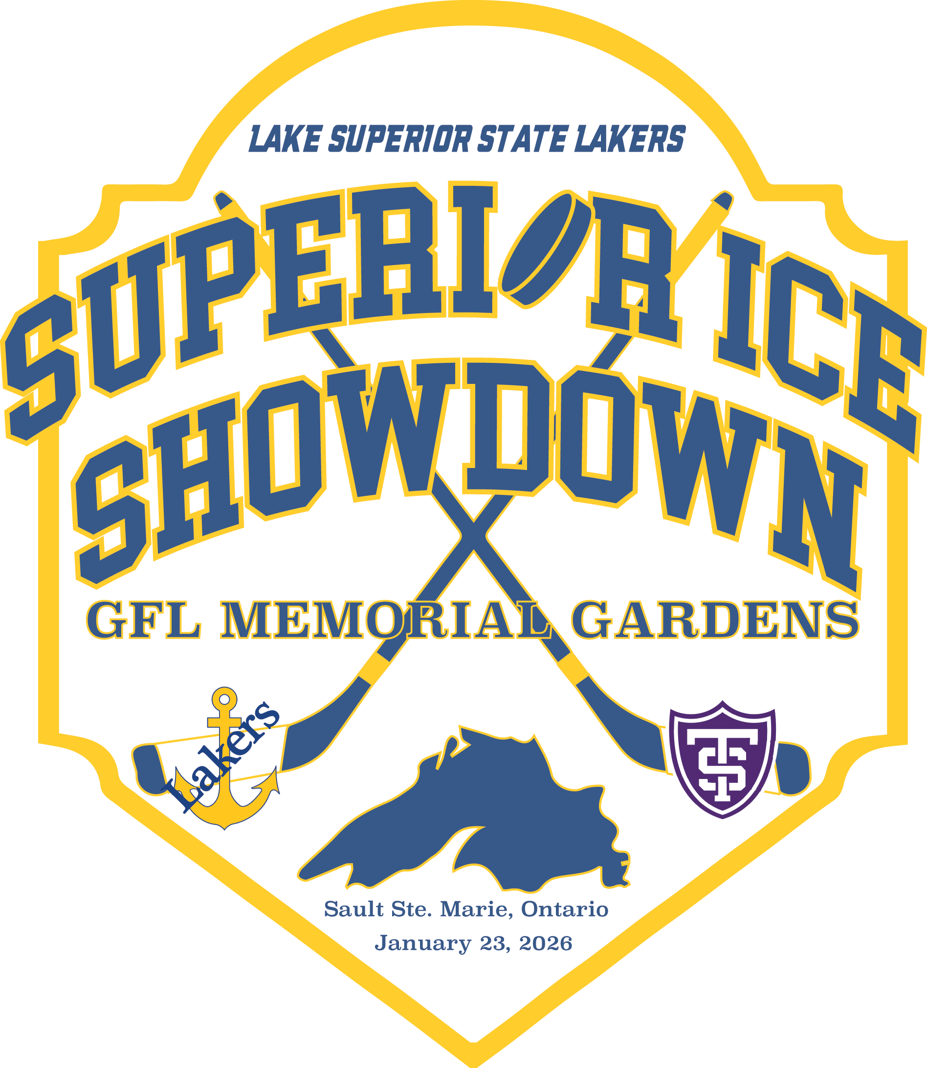 The Superior Ice Showdown celebrates the strong hockey connection between the Twin Saults and offers alumni in Sault Ste. Marie, Ontario, a chance to see Laker Hockey in their community. Please join us for the 2026 Superior Ice Showdown on January 23, 2026, at GFL Memorial Gardens in Sault Ste. Marie, Ontario. The event will feature an NCAA Division I Central Collegiate Hockey Association (CCHA) regular season game between the LSSU Lakers and the University of St. Thomas Tommies.
